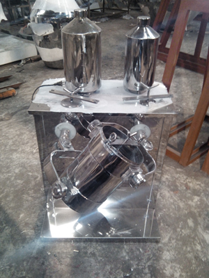 該機用于制藥、化工、食品、輕工、電子、機械、礦冶、國防工業(yè)以及各科研單位的粉狀、顆粒狀物料的高均勻度混合。該機的混合筒多方向運動,物料無離心力作用,無比重偏析及分層、積聚現(xiàn)象,各組分可有懸殊的重量比,混合率達99.9%以上,是目前各種混合機中的一種較理想的產(chǎn)品。筒體裝料率大,最高可達80%(普通混合機僅為40%),效率高,混合時間短。